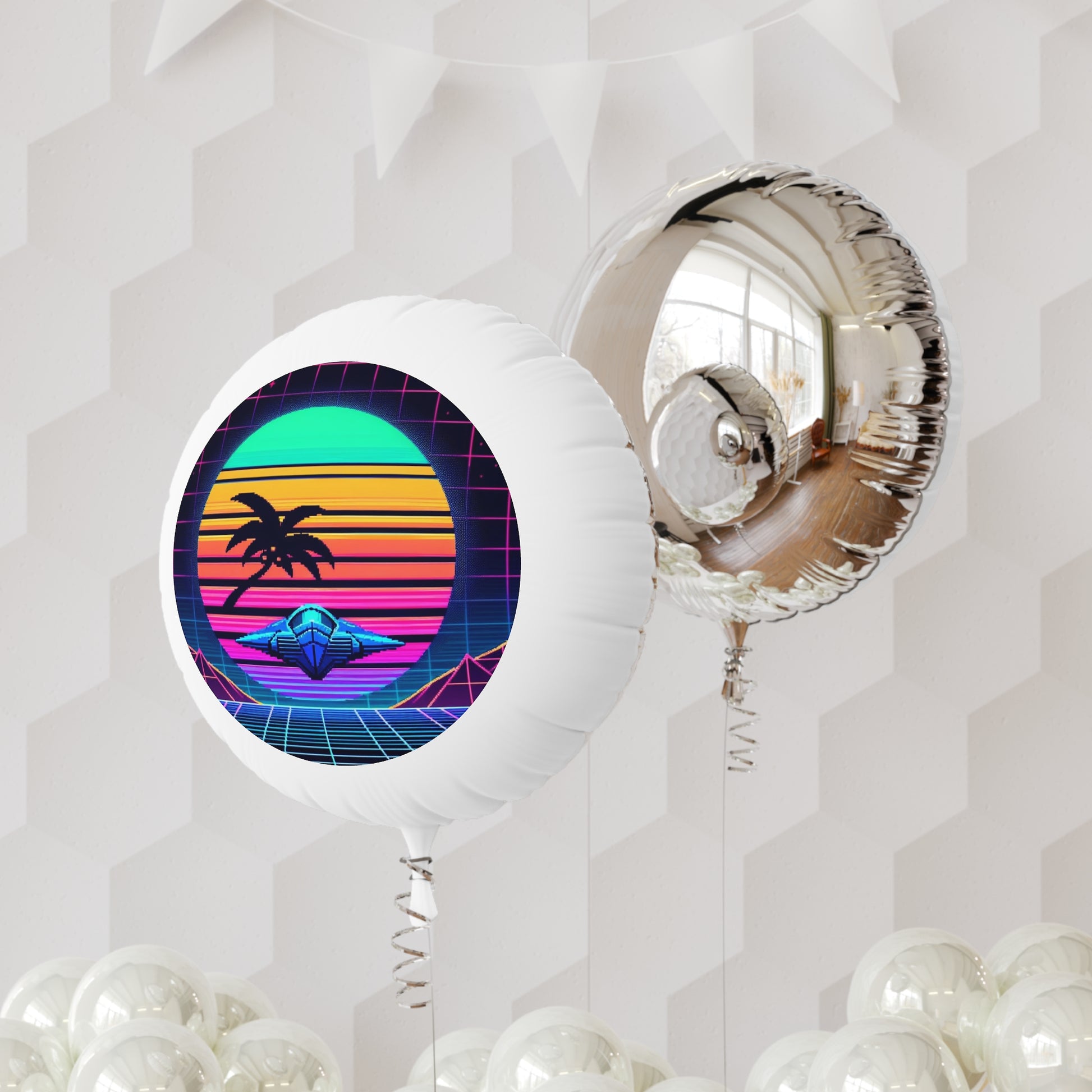 Make special events feel even more personal with Floato™ balloons. Your original designs are printed in beautiful quality on the white mylar surface with silver mylar on the back. These balloons take the podium for practicality. They're reusable and waterproof—perfect for indoor and outdoor events.